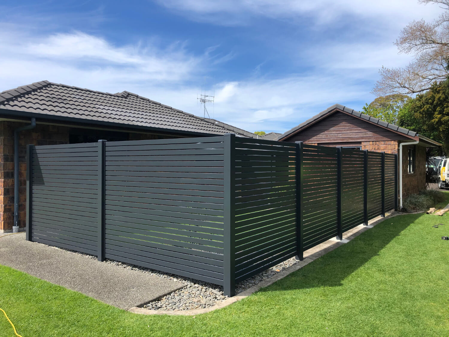 The ultimate screen for your outdoor living space or for the front boundary fence of your home. Aluminium Slat fences combine the strength and durability of pre-finished coloured steel to provide a low-maintenance and durable solution to securing your home and privacy.